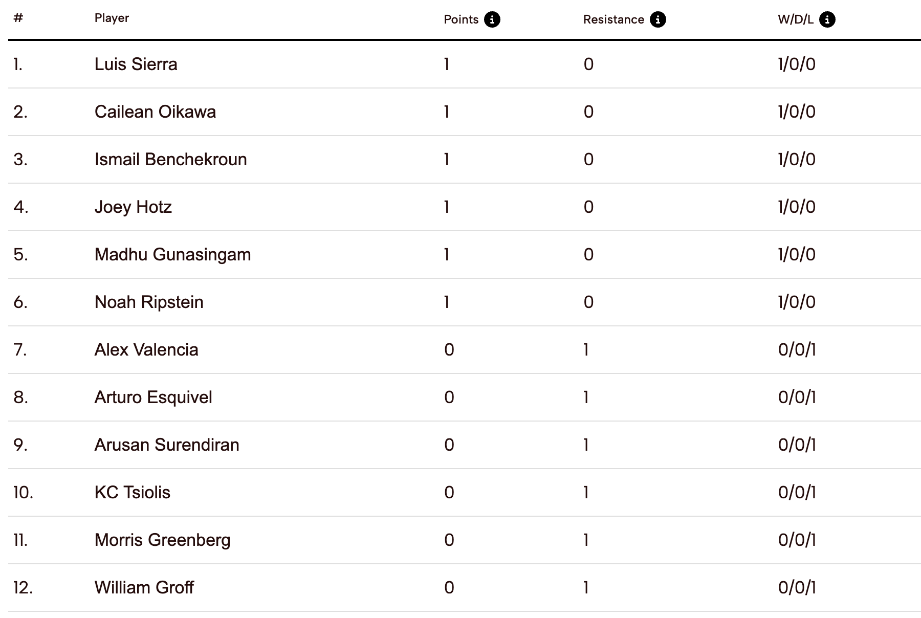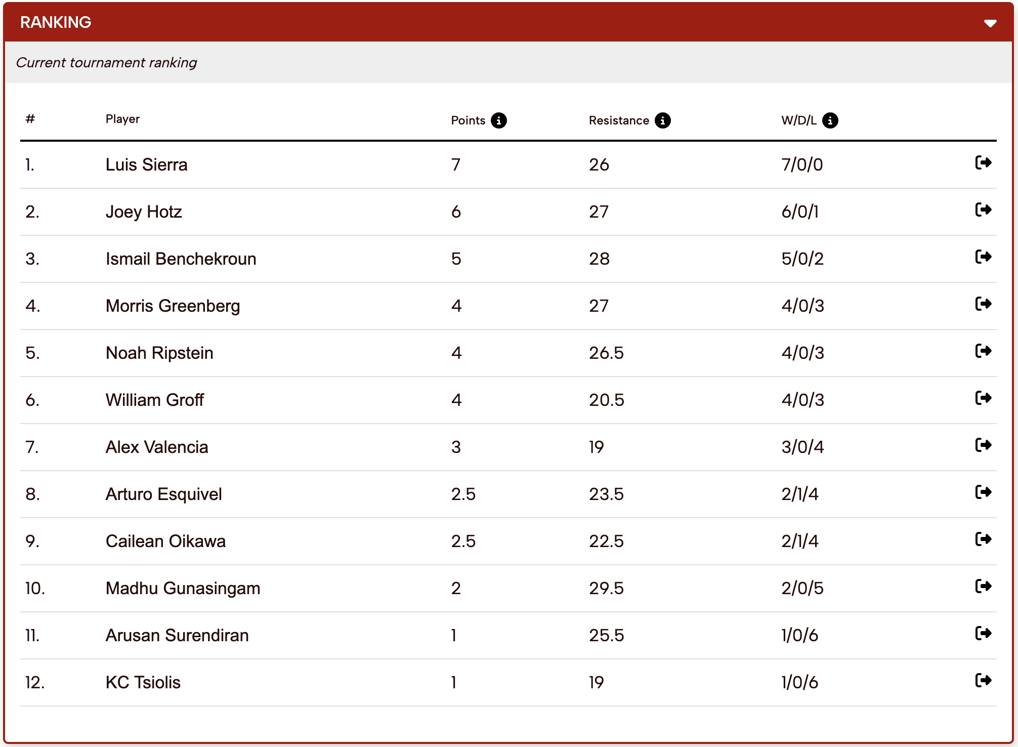 Here are the current standings of the ongoing SGSU Chess Tournament.